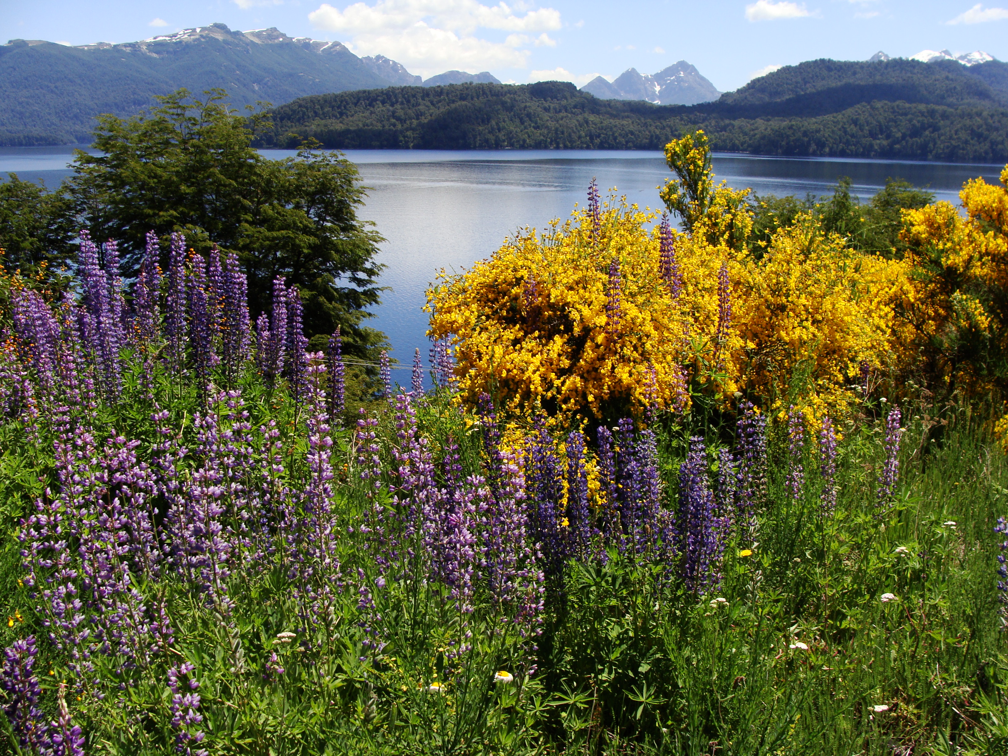 The first 40 miles were on paved road along countless pristine lakes. Rising out of the glacier waterways were the photographic Andes which reflected back onto the mirror lakes. We traveled from one National Park to another. Capturing great photos was so easy. It had all the elements which make for stunning images. Bright clear sunlight, rich blue sky, snow covered mountains, tree covered foothills, glacier-fed lakes and meadows of spring flowers. Take enough photos and one or two have to come up right. I find riding a bike a great way to explore an area and shot photography because we can stop anytime and spend as long as we want.