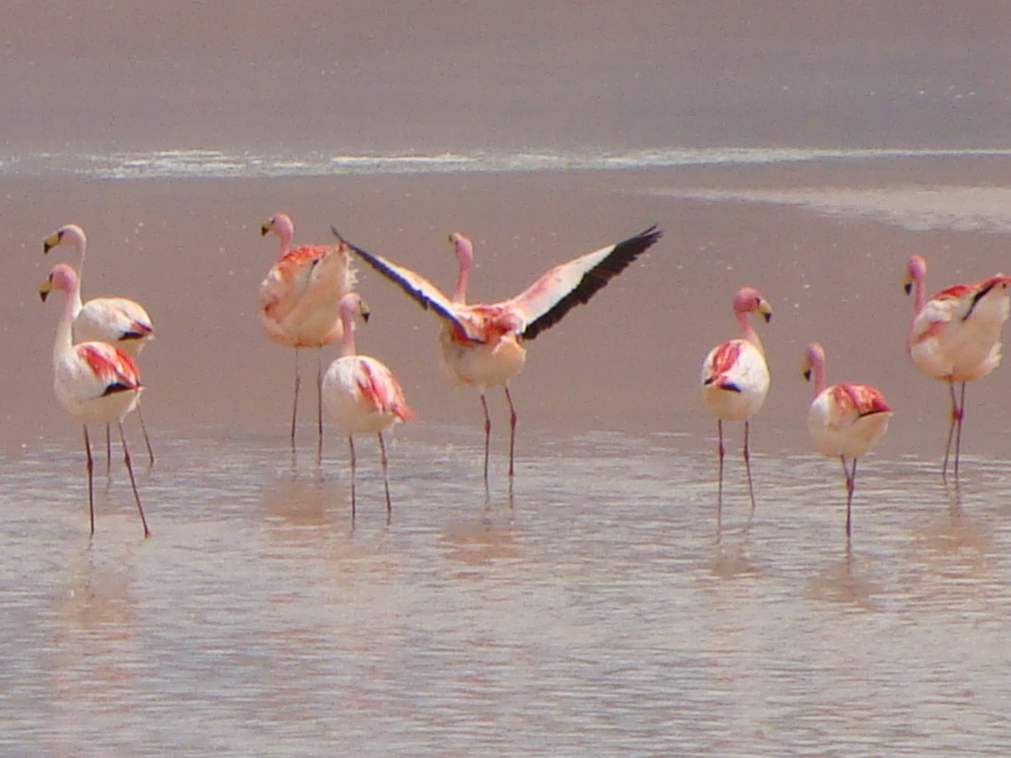 During the 3 days, we explored rugged, dirt roads that crisscrossed the 1000 kilometers and up as high as 5000 meter. We shared this adventure with a total of 13 tourist, two drivers, two vehicles and the cook. For me the highlights were the flocks of wild flamingos, the thermal pools at sunrise, the vastness and emptiness of the dried salt lake called a Salar, and the multiple colored lagoons. Take a look at the rest of the photos as they speak for themselves. (Click on the little photos to see larger versions or to view as a slideshow. Or see all of the Salar trip pictures here)