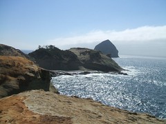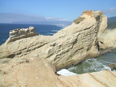 We have been riding along the Oregon Coast for the last 4 days. The big, wild Pacific coast is inspiring to experience. The beaches are nestled in between cliffs lined with towering evergreens leaning away from the oceans powerful offshore winds. Occasionally parts of towering cliffs have collapsed down to the protected beaches. The beaches are wonderful places to walk, explore tidal pools, surf or even drive cars. Every corner offers a new photograph opportunity.