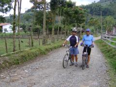 In Armenia, a wonderful mountain-biker took us under his wing and set us up at his aunt's finca, a banana plantation. Gonzalo Gomez took us mountain biking to the beautiful colonial town of Salento, introduced us to his wife, monther, and aunt. We had a blast and were treated like kings.