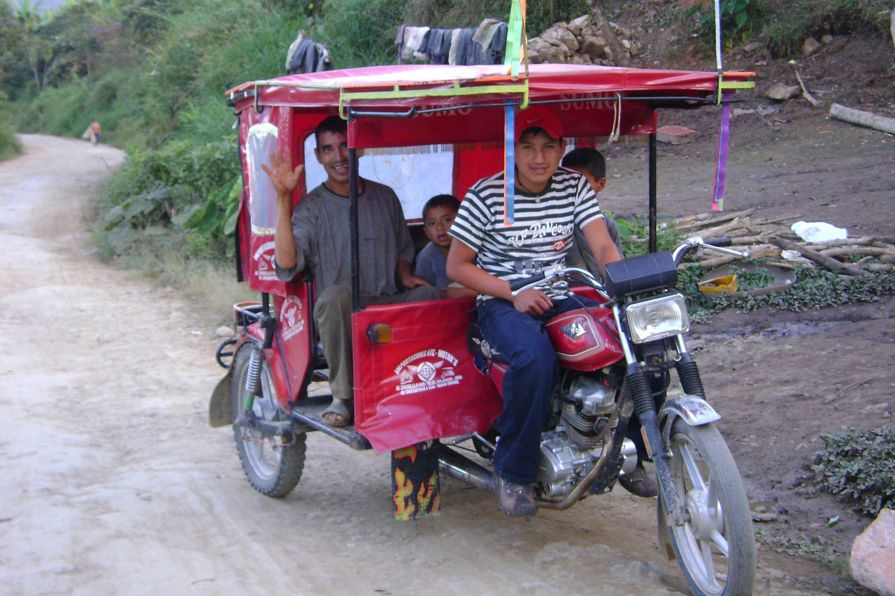 From the border we started off following a river and actually had a flat road for 7 kilometers. Yes flat. We heard that Peru is flatter then Ecuador but we could not believe it. Of course, we found out otherwise in the morning, as the road rose above the village of Namballe. The people were so friendly on our ride from Namballe to San Ignacio! We feel like rock stars once again. Everyone waves and beeps and everyone says hello and "welcome to Peru". We even got filmed by a couple passing by on motorcycles. He explained it is for marketing material promoting tourism in the town of San Ignacio. Along the route a young boy ran after us with two papayas in his hands to give us as a present. His name was Carlos and he had no shoes but he had a wonderful smile to go with his kindness. We have found the people much more outgoing and less intimidated than the reserved folks of the highlands of Ecuador. We like it when people think we are special. We make more contacts and find out more about the people we see along the way.