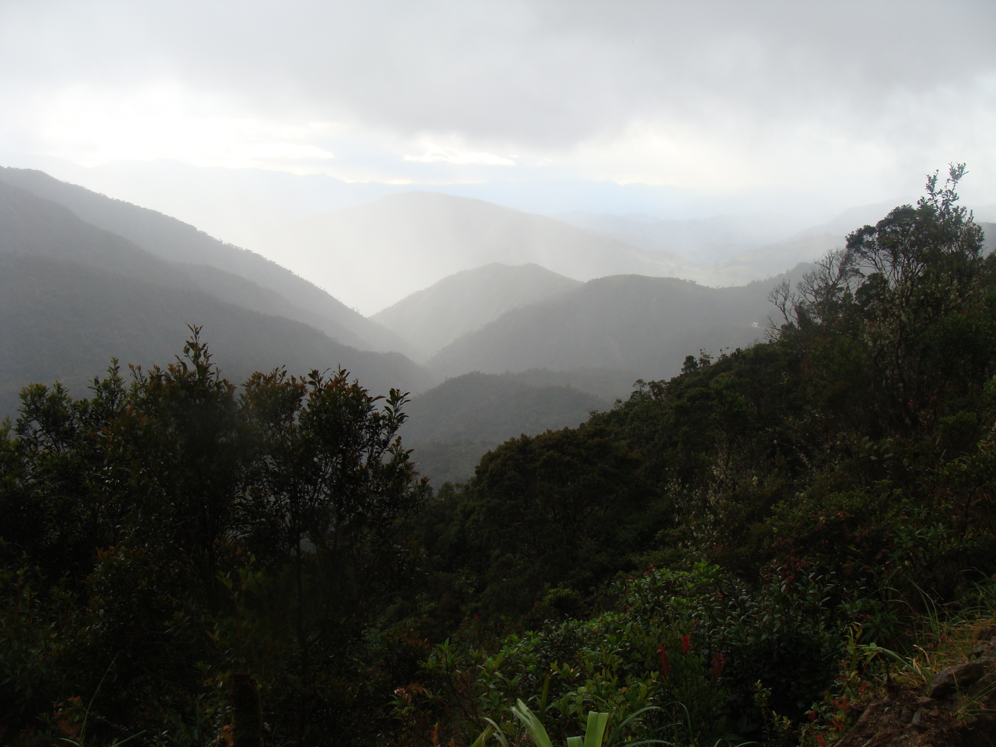 The ride was enchanting and we lost track of time in this misty wonderland as dark descended around us. Not a house or a finca was anywhere to be found. We considered setting up the tent along the graded banks of the road but we knew that camping 5 feet from the road was not optimal so we continued our search. When we crested the next climb we found a flat marshy spot under some electric wires, a safe distance from the road. As quickly as we could we set up the tent and dove in. The rain which was to this point gentle had changed its characteristic and hit us hard. We dragged all of our panniers into the vestibule of our tent and settled in for the night. Unfortunately we dragged our wet selves into a dry tent and contaminated our dry sanctuary. With wetness everywhere we did manage to sleep most of the night.