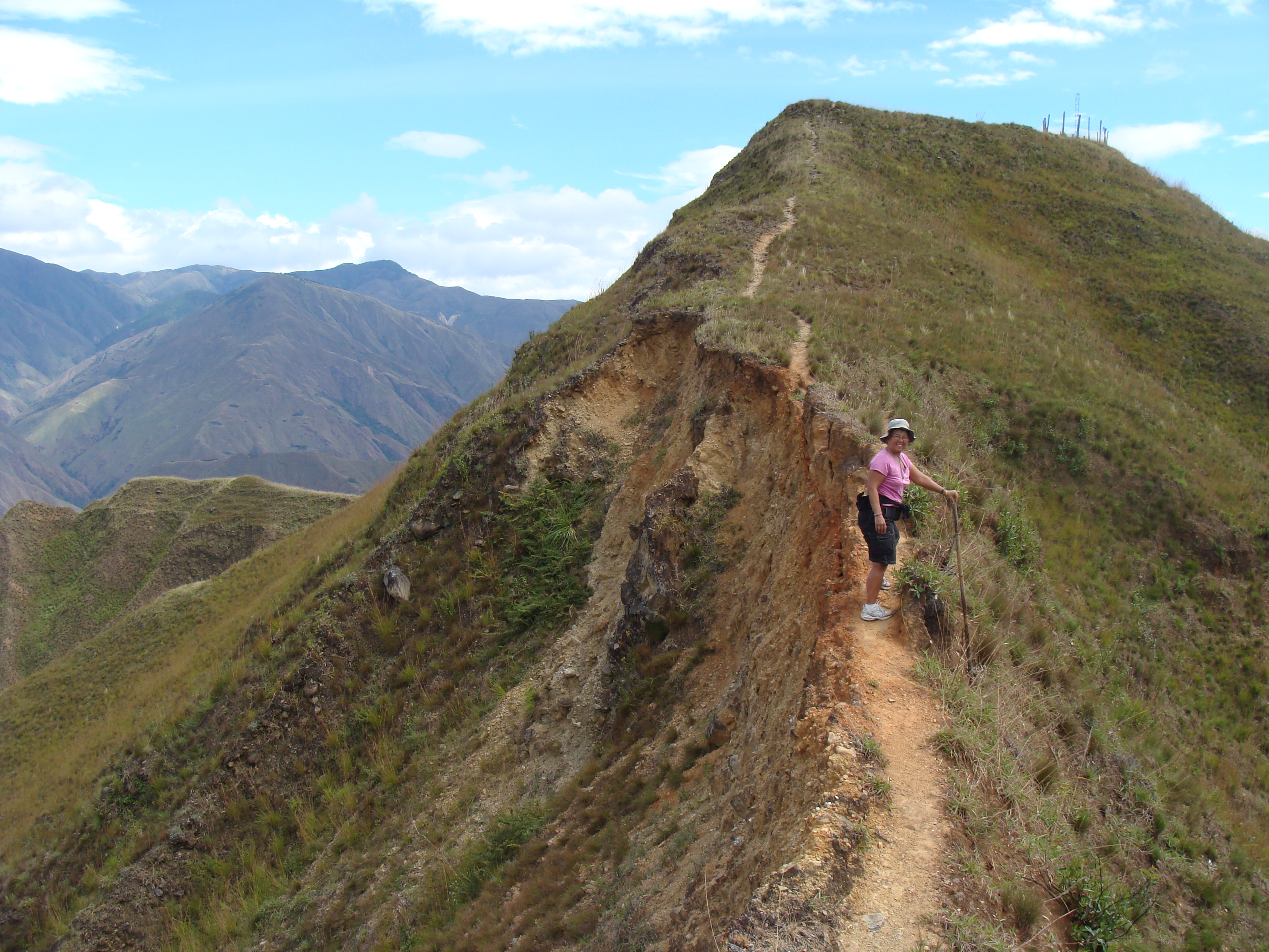 We stayed at the Hotel Izhcayluma, 2 kilometers south of town. The place was so relaxing with hammocks outside our room and views of the Podocarpus National Park and priced right for our budget. Randy and I played ping-pong for hours, and shot some pool and played chess. I entered a ping-pong tournament where the winner was supposed to jump in the pool naked. Luckily I was knocked out of the competition the second game I played, but I did lose to the eventual winner. On the second day there we hiked for 5 hours, leaving from the hostal, passing through the outskirts villages of Vilcabamba, and up then along a path that followed a knife-sharp ridge. You could look down to the left, viewing one valley 1000 feet below and the view to the right was the town of Vilcabamba more then a 1000 feet below. The ridge wound it way down to a dry river bed which we followed for another hour. The next day we hiked in the Rumi Wilco Reserve. This nature reserve was created by an Argentinian couple, Alicia and Orlando Falco, in an effort to reverse the environmental degradation caused by slash-and-burn agriculture. Randy hiked up to the higher parts of the reserve getting himself in and out of trouble while I found a hammock to have a nap. I ended the day with a well-deserved one-hour massage.