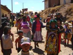 But it wasn't all so bad! When we got to the top of the pass we came to a little village that was having a great fiesta, with dancing and the Inca maidens in costume and just a very friendly group (except perhaps for the quick-finger that got Randy's tool). They begged us to stay and dance, but we knew we had a long way to go. We loved their music and their friendliness. And they pressed a bit of "Peruvian Beer", the chicha they love on Randy. It was another delightful village.