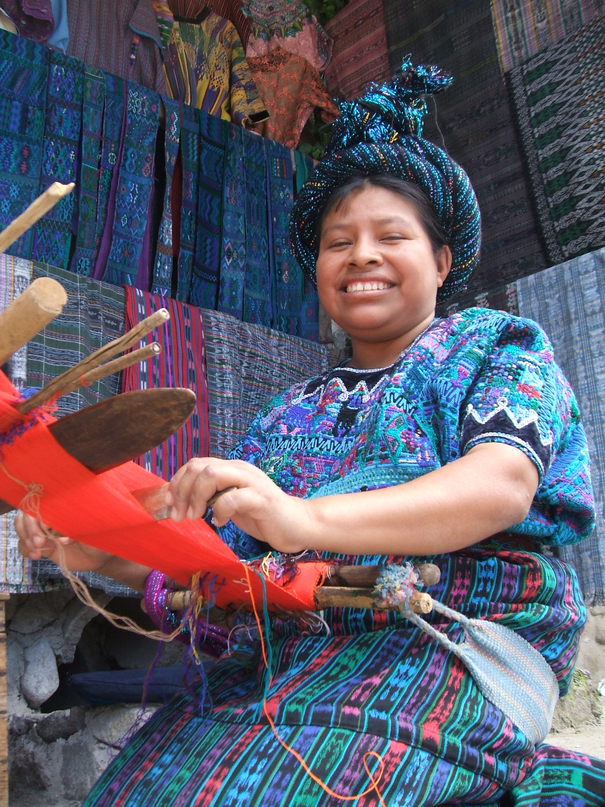 In Guatemala I spent months visiting women who hand-weave tradition Mayan fabrics using a back-strap loom. A back strap loom attaches to the waist by a strap; the artist kneels on the ground keeping constant pressure on the weaving in order to weave yarn though a forest of parallel threads. During the weaving process, symbolism seem to magically appear. These design and patterns can convey information about the weaver's village, marital status, culture or personal beliefs which often represent thousands of years of the Maya civilization. (More information on the women of Guatemala including the little downloadable book we wrote about them is here.