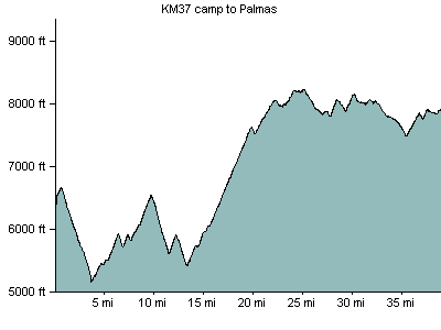 Still brutal climbing, even though there were downhills involved. We got a ride from the lowest point in a truck for 15km up (which was 700 meters). We were whooped anyway. There was about 25km of dirt on this. Some of it rough, but not really too bad, except the big climbs.