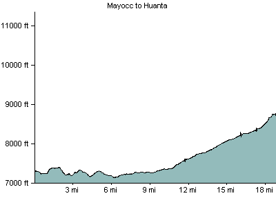 All dirt. Some of it exceptionally good, as good as pavement. Not so much dust on us today, but still plenty of the nasty little bugs that suck our blood and leave us itching. Huanta is a very nice town after all that dust and all those dusty tiny villages. Finally started climbing out of the canyon... We stayed at the Casa Real hotel, which was an amazingly beautiful place.