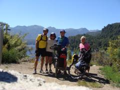 The next day we continued on our route and cycled to La Angostura where we would take a bus back to Bariloche, avoiding the busy highway around Lake Nahuel Huapi. During the day we met a cycling couple from Argentina and rode with them for the second half of the ride. Chris and Maria live 6 hours north of the Lakes district but was touring the area for the long weekend. The new friends made the day fly and distracted us from our tired muscles. We stopped and cooked lunch along the shore of Lago Espejo Grande. We learned from them about living in Argentina, working, taxes, benefits and health care and retirement. The dirt road turned to pavement and we continued around Lake Nahuel Huapi for a few kilometers, stopping to take some stunning panoramic photos. After reaching town, all four of us washed up at the local gas station and changed into clean clothes. We then did what most bicycle tourists do when arriving to civilization, and went in search for food. We found the best ice cream in the Americas and ordered 3 scoops each. I am talking about a huge bowl of rich cold, full flavored delights: Lemon, Berry and chocolate bites in caramel ice cream called Dulce de Leche. I will be dreaming of that bowl of ice cream for a long time.