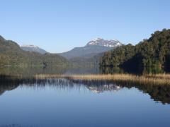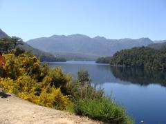 We passed a beautiful campground at Lake Falkner which called to us but we continued on and made more miles. We wanted finish the pavement and to get some of the riding on the dirt road out of the way so we would not have to ride some many miles on dirt the next day. Just as we got on to the dirt road, it started to rain. We got our rain gear out for the first time since northern Peru. It usual happens that as soon as we get our rain gear on it stops. This was the case. The rain stopped after 10 minutes of light rain. Late in the afternoon we made it to the campground Pichi Traful, a glorious spot along the lake and along a crystal clear river. We camped down the river a bit away from most of the campers, in order to enjoy the solitude of nature. We met a Dutch cycling couple, Clara and Rolf, and shared some tea and stories of the road.