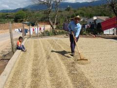 On the picking side, we've met little kids with mayonaise jars and whole families, each with a home-made bucket. They work as hired hands, getting paid about 1 lempira, or 2 cents per pound of picked coffee. A family can pick a fair bit in a day - maybe each of the kids can pick 40 pounds, bringing in US$2.00. This time of the harvest can be the primary cash earning time of many of these campesino families.