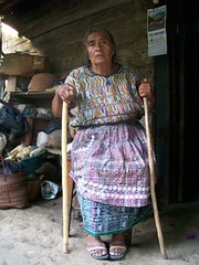 A few days ago I went to the home of Reyes Espantzan in Tecpan to take her picture with her weaving. While I was there, her landlord Isabel (I thought it was her mother at the time) begged me to take her picture too. She's not a Friendship Bridge client or anything, but oh well. Digital photos are free! She said "maybe somebody will see me with my sticks and send me a walker". Well, I just wrote down her name and thought nothing more of it.