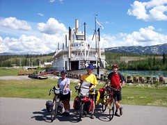 Here we are in front of a Whitehorse landmark, the Klondike steamer. It's much larger than the one we saw in Dawson, and it ran the river from here to Dawson.