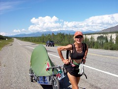 We have met many people that make our little trip look pretty insignificant - Meet Rosie! She has run (self-supported) two thirds of the way around the world so far, starting in Europe, crossing all of Russia, and across Alaska in the dead of winter. We sat down and had a cup of coffee with her on her bearskin rug on the side of the road. What a delightful person! (Note that Rosie sailed around the world with her infant son and her husband 35 years ago - she's not new to this sort of thing!)