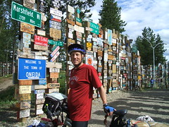 Watson Lake was a major construction staging area for the Alaska Highway back in 1942 and a lonely GI put up one sign pointing the way to his home town. Now there are more than 40,000 of them. Nancy got lost looking around at them and I didn't find her for hours.