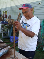 He has been a fisherman and a logger for most of his live but now he build boats in Vancouver but alway returns home to help his family with the yearly catching of the salmon and the canning and smoking of this wonderful wild food. Sockeye salmon is the very best. We found the people wonderfully friendly and helpful. We hope go back some day and spend some time on this incredible island. Thanks everyone at Alert Bay.