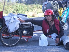 These two are idealogues. They're on the bikes because of an extreme rejection of cars; they're as green as they come and as delightfully idealistic as any young couple could ever be. They refuse to pay for a place to stay, so we never see them at the (very cheap) campgrounds at night, just along the road in the daytime. They're experts in stealth camping and free camping. They're just 19 and 25, and we are amazed to see the great adventure they've undertaken - they're going on to Mexico.