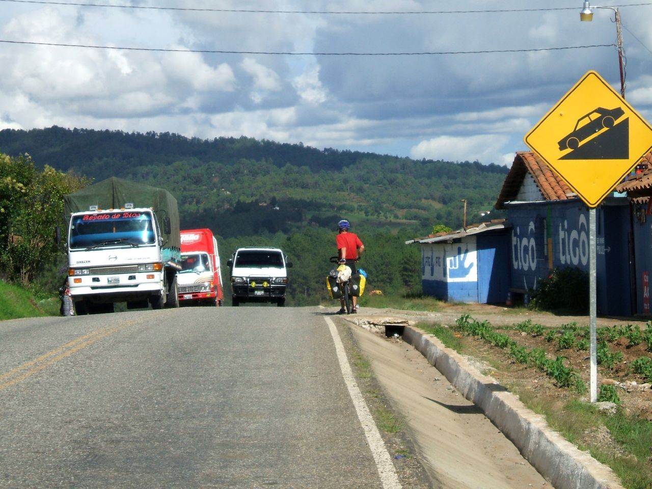 I hope I do not sound like I have all the answers because I do not. Every road is different. The Guatemala border crossing freaked me out because of the new experience of all the chicken buses coming up behind us. Boy are they aggressive but mostly with the loud horns. I thought they where saying "Watch out I am coming through and if you are in my way I am going to get you." But after a few days I found they really said, that they where coming though, yes, to give you warning but mostly to let the people know that their rides are coming or around corner to warn others of their presence and other times just to say hi, great job. They are very expressive with those horns. But they are good drivers and used to avoiding all sorts of things on the road, including cyclists. They don't get paid for having accidents or killing cyclists. I find that if everyone cooperates, including us, we all get along just great