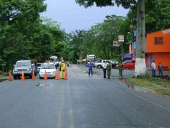 It was late in the day and the young men at the military checkpoint told us to hang it up for the day. We found a hotel for the night and continued in the safety of the daylight. I was a little tense riding through the small town that was under military control. What we found out was that two days earlier there had been a skirmish between the campesinos and the military during a protest where one person died and several were hurt. I must admit I was tense as we were waved passed the road block by the riot squad and into the small town of Taraza. I remember seeing the charred remains of tear gas, spent metal parts and burnt tires scattered through out the towns main street. It was the closest I had ever come to a war zone and I was scared. Randy jokingly said we should stop for breakfast. I said "no way" and we rode on toward a more tranquil part of Colombia. I took my first deep breath about 15 miles past the town and did not stop sweating for another 10 miles.