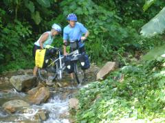 At one spot the road is washed out so we had to carry our bikes through a running creek that had fallen trees and brush. All part of the adventure. After about 6 hours of riding we dropped down to the Amazon lowlands where we would ride for the next 3 days. The forest is being deforested at an alarming rate. We saw so much wood being cut for lumber and stacked along the road side, I believe it was the only business in this region. It was sad to hear the chain saws and see the results of the swift destruction of the lowlands of eastern Ecuador. The jungle was being raped and no reconstruction was seen anywhere. This has been going on for some time throughout the Amazon region, of course, but it's not pretty to see it firsthand.