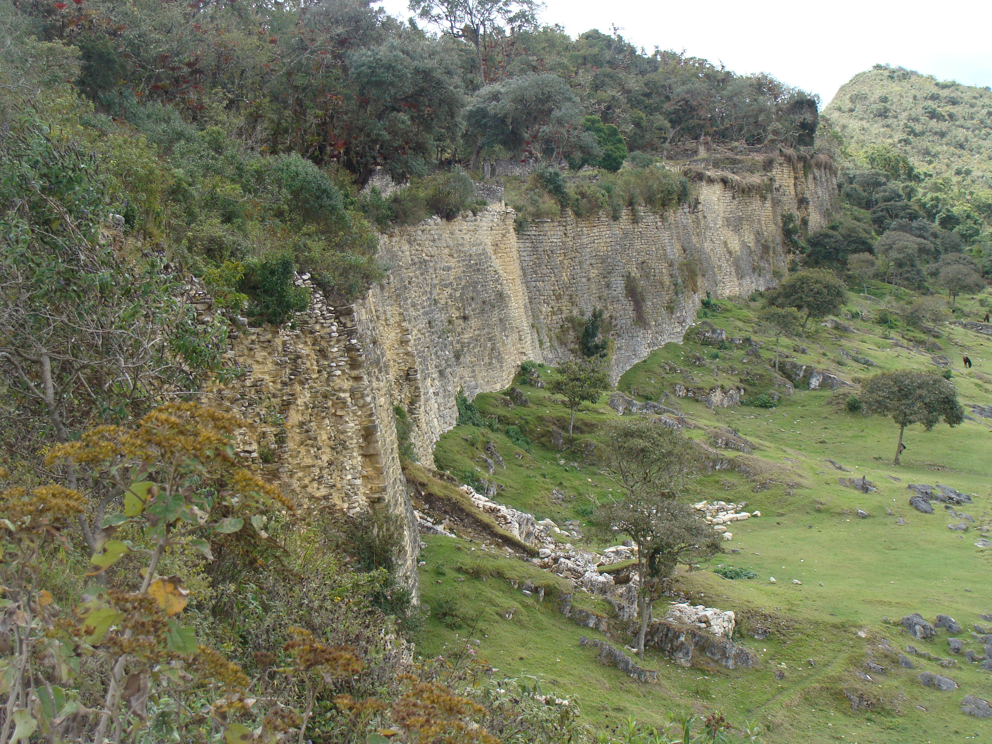 At Pedro Ruiz we hit a stretch of highway construction which closed the highway during the day, so we loaded the bikes on an evening microbus for the quick trip to Chachapoyas, the former capital of the Chacha people, who were conquered by the Incas in about 1500. We were headed for their most impressive fortress city, Kuelap. Riding further along the Rio Utcubamba, we got to a little place called El Tingo, where we hoped to organize a ride up to the ruin, but it turned out that there is almost no reliable transport. (It is a 10 kilometer, 1300 meter, 3-4 hour walk up to the ruins on a trail, but we wanted to take a rest day.) We weren't able to organize anything in El Tingo, but Nancy insisted that we call some agencies back in Chachapoyas, and we succeeded in getting one of the tours out of Chachapoyas to pick us up the next day. But Kuelap was an amazing site, built apparently as a fortress high on top of a mountain, much like Macchu Picchu was for the Inca. When the Incas conquered the Chacha people, they forced everyone out of the fortress, so it was hardly a factor when the Spanish conquerors came just a few years later.