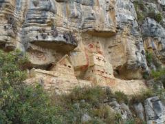 From El Tingo we rode still farther up the road until Nancy happened to spot a sign announcing the turnoff to another famous archaeological site of the Chacha people, Revash. We rode up a canyon about 5km and then hiked high up the canyon wall to see the ancient burial site. It certainly reminded us of an Anasazi site from the American southwest, but in miniature, as it was a burial site, instead of a place to live.