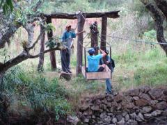 Ironically, the things we'll probably remember most about this stretch of the trip will not be the impressive fortress, but the joys of bike touring. On the way up the river we were yelled at by two workers from across the river - their cable car, the only way they had of getting across, was on the wrong side of the river. So they coached me on how to get in and take it across to them, and then we all came back across together. And in Tingo, we had time to do what the few other residents did. We just sat on the bench by the police station or in front of the little restaurant and watched the few people go by. A burro-load here, a microbus there. Perhaps an old woman carrying a load of firewood. Seeing the police lift the gate for a truck passing through. Just watching the little parade was all there was to do. And we stayed at the delightful and quaint little Hospedaje Casa León that looked like something from another century, but still had hot water in one of the bathrooms.