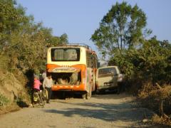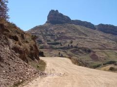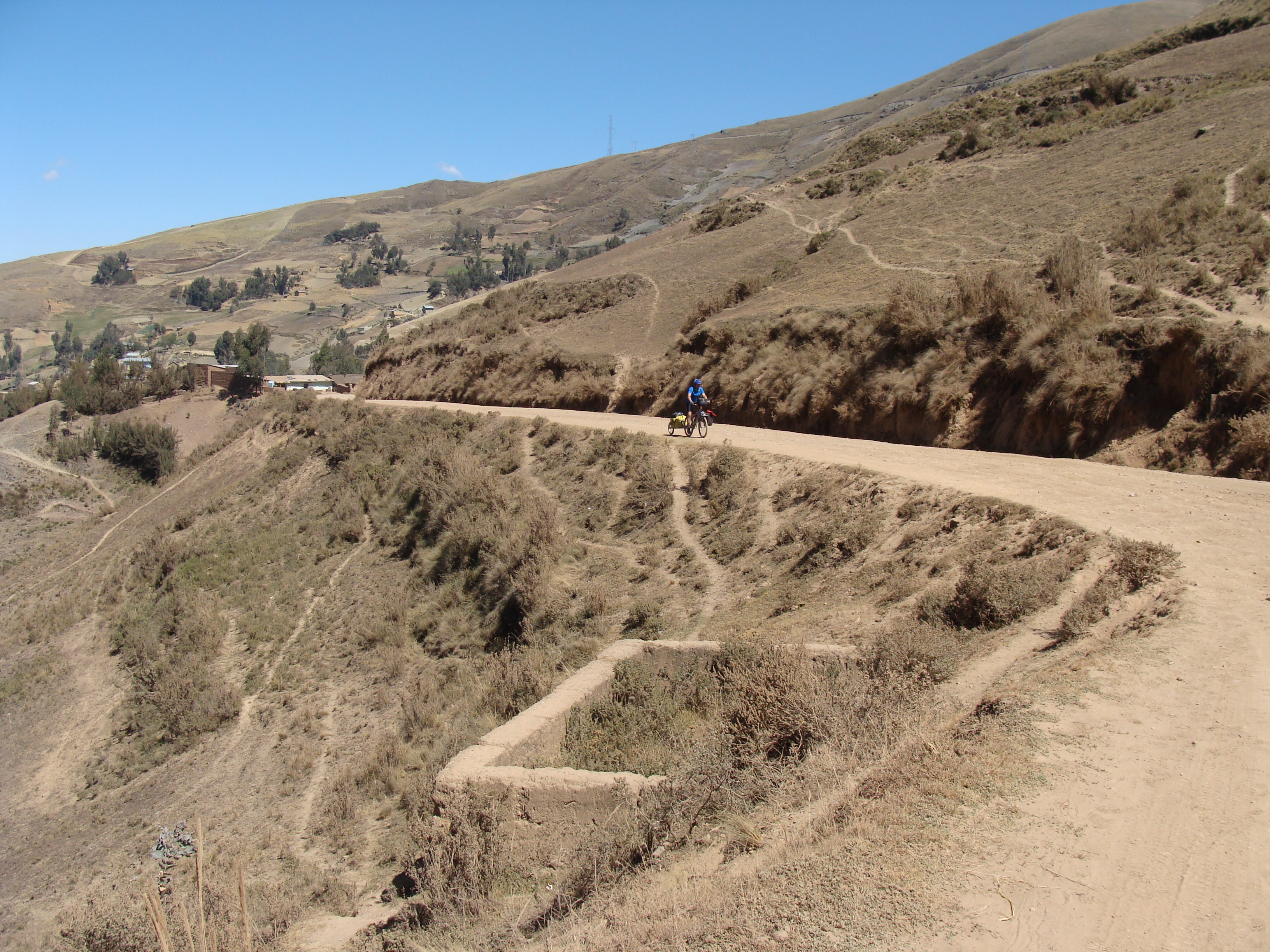 Yesterday we rode about 45 miles up to 4000 meters (13,120 feet) and then down to 1900 meters (6232 feet) on a nasty, loose, difficult dirt road. Randy crashed on the downhill. He scraped up his arm and hip and bruised a rib. I was behind him and when I came up to him he was down on the ground holding his hip, right on an edge of the road 5 feet from a big, big drop. He was bruised up yesterday but feeling better today. Seeing him lying there scared me. By his position, I thought he broke a hip or a leg. All the rest of the day I was upset.