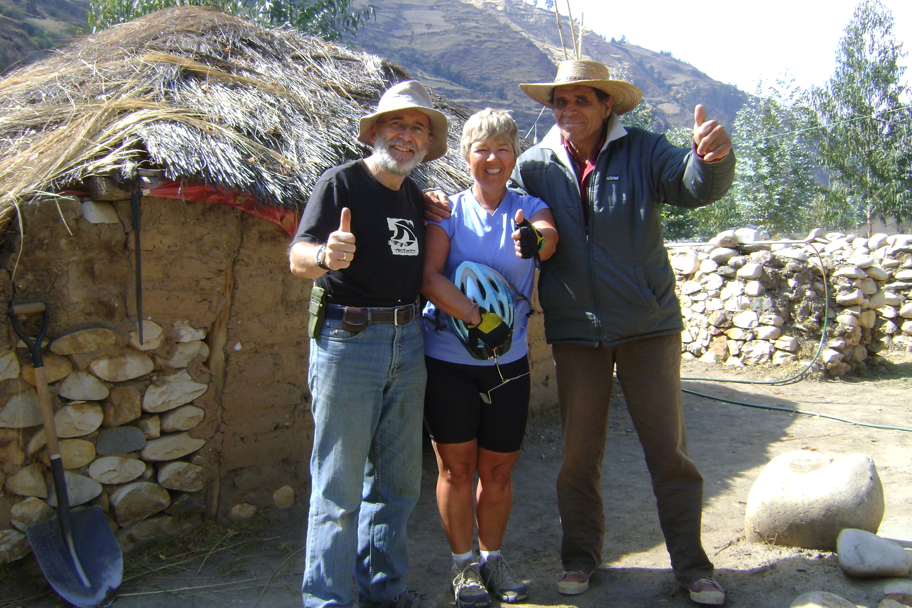 In Huaraz, in the Cordillera Blanca, we looked out of our hotel window at the amazing peaks of the tallest mountain range outside the Himalayas. Huaraz is at about 3000 meters, or 10,000 feet. But from there we began to climb gradually to a pass at 4300 meters, then down a bit, then up to the biggest pass of the trip, at 4700 meters (15,400 feet). It was all incredibly beautiful.