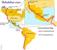 Ya alcanzamos mas o menos la mitad del viaje. Hemos viajado en bici casi 16,000 kilómetros desde el inicio del viaje en Inuvik, Canada el 9 de Junio de 2006.