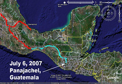 En este mes pasado andamos desde el sur de Oaxaca en la costa unos días, y entonces tuvimos una subida muy grande hasta las montañas de Chiapas. A Nancy le gustó tanto el clima, que nos quedamos allí dos semanas para estudiar español. Después de eso, pasamos en pocos días hasta Guatemala y una semana bonita de las montañas de su oeste.